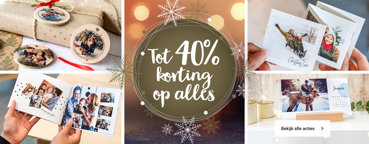 Kalenders & agenda's 30% korting Naar kalenders en agenda's Fotocadeaus Tot 25% korting Maak jouw fotocadeau Fotoboeken Tot 35% korting Maak nu je fotoboek Wanddecoratie 25% korting Maak je wanddecoratie Fotoafdrukken 25% korting Ga naar de fotoafdrukken Kerstkaarten 40% korting Ga naar de kerstkaarten
