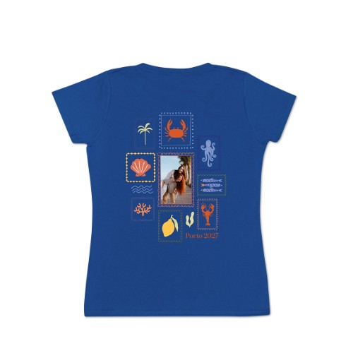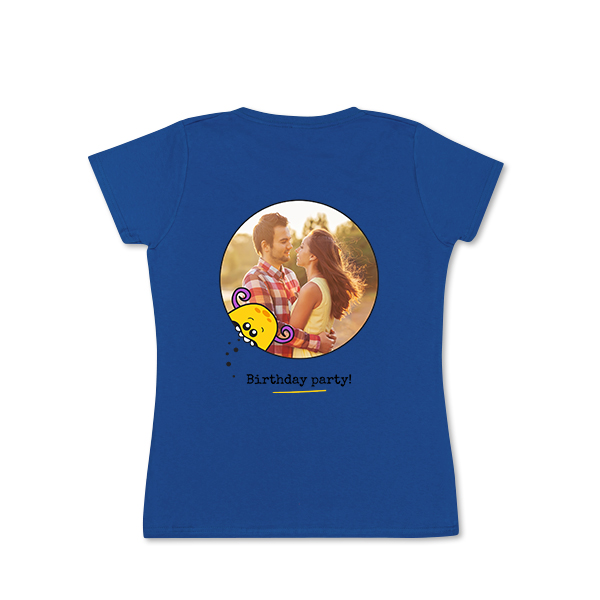 Kies je ontwerp voor T-shirt vrouwen blauw Achterkant XS