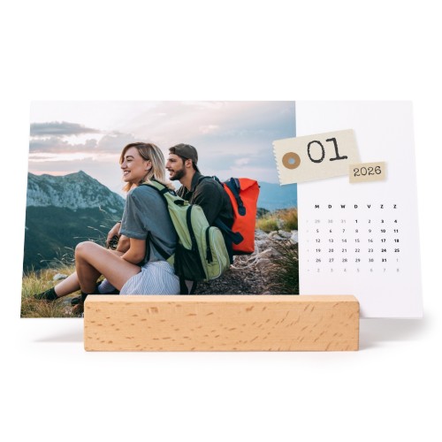 - Bureaukalender in houten houder